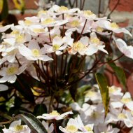 A vigorous evergreen climber from China with leathery, glossy trifoliate leaves and fragrant creamy-white flowers 5-6cm across, in clusters in spring