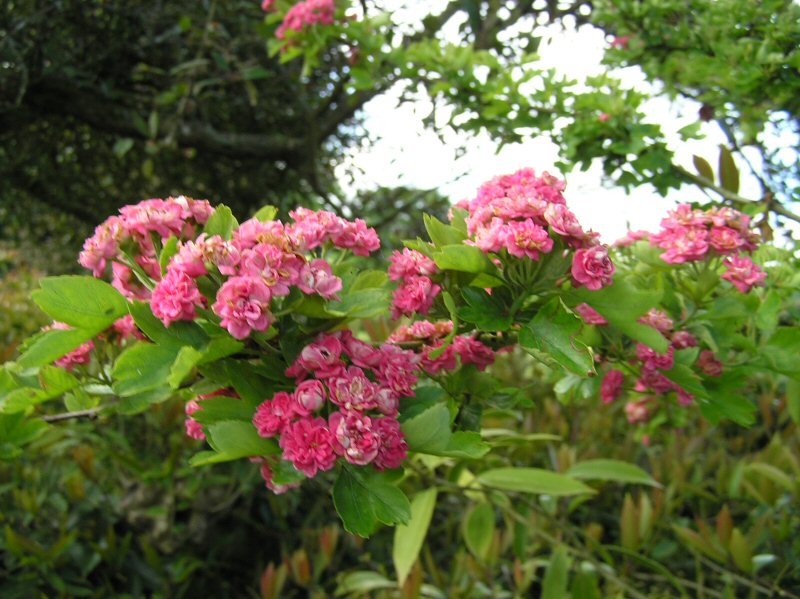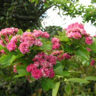 A small hardy, deciduous tree up to 5m, a red form of the common Hawthorn, usually with spiny branches, lobed or toothed leaves and fully double, light red flowers followed by red berries in autumn.