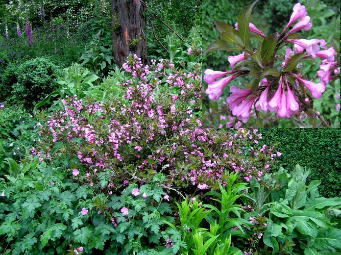 Uncommon small hardy deciduous flowering shrub, 1m by 1m, with ovate, dull purplish-green leaves and clusters of funnel-shaped, rose-pink flowers with paler insides, in late spring. The genus is native to East Asia.