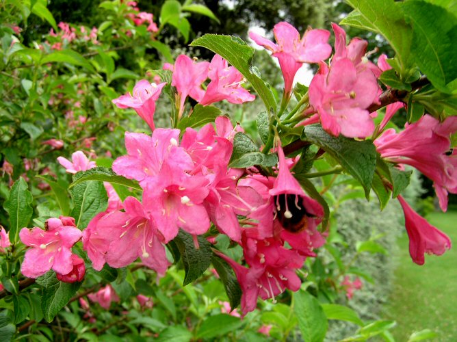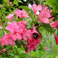 An unusual medium sized hardy deciduous flowering shrub, 2m by 2m, with ovate, dark green leaves and clusters of funnel-shaped, light pink flowers in late spring. The genus is native to East Asia.