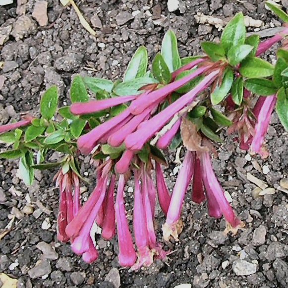 An half-hardy evergreen shrub, native to Mexico, that requires a warm wall to thrive. Oval, glossy, dark-green leaves to 5cm (2in) long and eye-catching, pendent, purple-pink tubular 3-5cm (1¼-2in) long with 5-lobed calyces in profuse terminal panicles appear from June to August.