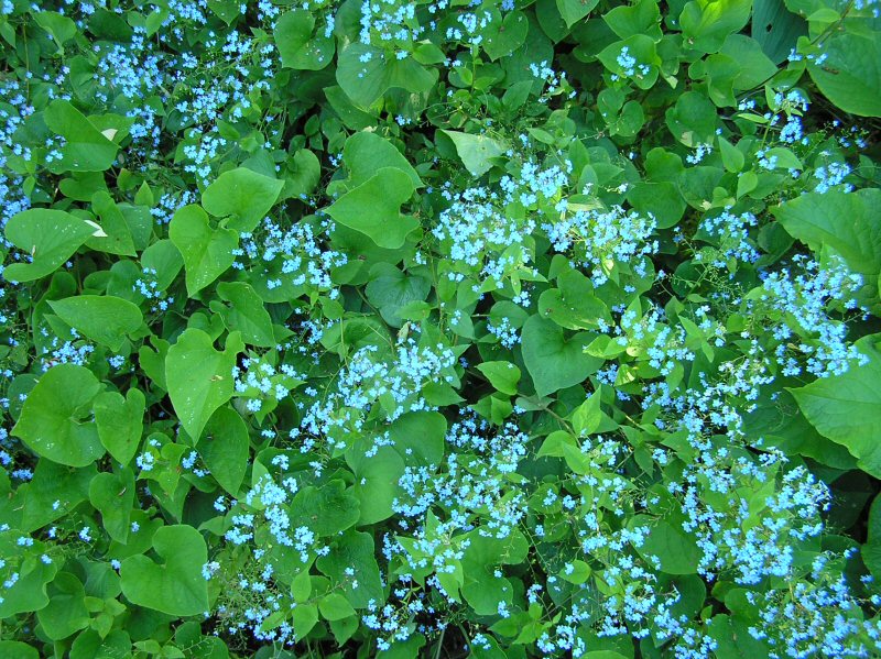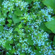 One of the most attractive and useful spring-flowering hardy perennials, producing a dense ground-covering layer of early foliage up to 45 cm. The leaves, up to 15cm (6in) across provide an attractive foil for the sprays of starry pale blue forget-me-not flowers. Flowering for several weeks in spring.