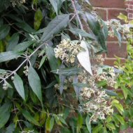 Fast growing, to 4m x 4m (12ft x 12ft) dense evergreen, graceful, hardy shrub with beautiful deep-green glossy foliage above and silver below. Profuse spikes of tiny, tubular, sweetly-scented cream flowers appear from late autumn to mid-winter on the ends of the 'weeping' branches. The flowers attract many butterflies and other insects.