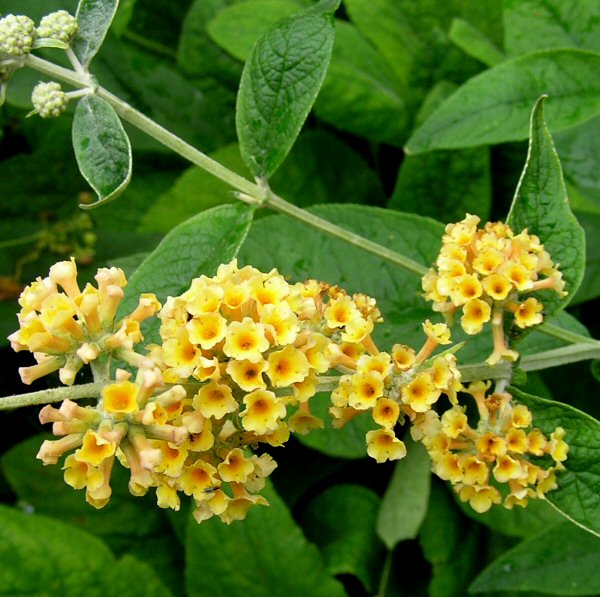 A hardy large semi-evergreen shrub to 5m, with dark green leaves and dense globose heads 2cm across of sweet-scented bright orange-yellow flowers in loose clusters at branch tips in early summer.