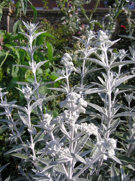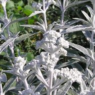 A miniature new buddleja, originally called 'Silver Anniversary'. A hardy small shrub (H 1m x S 1m) with silvery woolly evergreen foliage. The packed tiny white flowers make shorter panicles than the ones on the traditional large buddleja.
