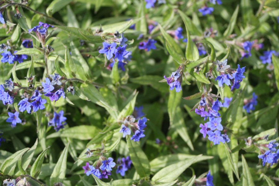 A bushy plant that reaches on average 20-60 centimetres (7.9-24 in) of height, with a maximum of 70 centimetres (28 in). The stem is hairy, erect and unbranched with dark green leaves and small purple-reddish funnel-shaped flowers which turn to deep blue from April to June. This species is widespread in British Isles, central Europe up to South Russia and in Mediterranean countries from Spain to the eastern Turkey.