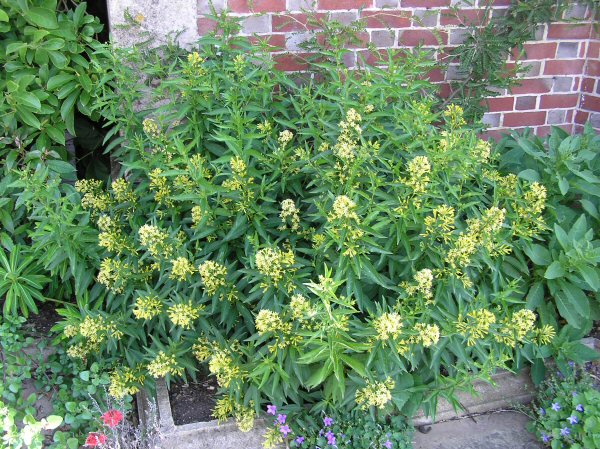 A deciduous to semi-evergreen bushy shrub (H 2m x S 2m) with linear to lance-shaped, mid to dark green leaves and, from summer to autumn, clusters of night-scented, tubular, bright yellow-green flowers followed by purple-brown fruit.