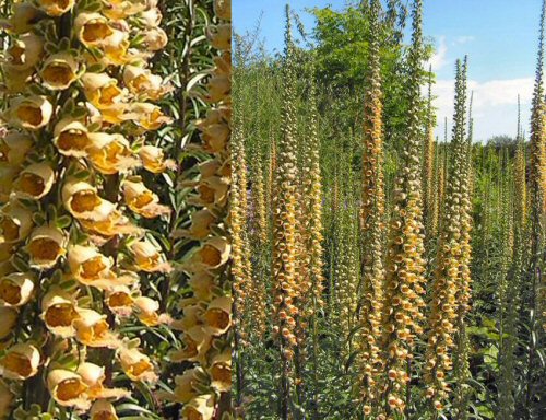 A short-lived hardy perennial native to the northern Mediterranean H 1.2m (4ft), S 30cm (1ft). It produces oblong to lance shaped dark green leaves, sometimes hairy underneath 5-20cm (2-8in) long. In summer, racemes of golden brown flowers 3.5cm (1.5in) long which have rich red to dark brown veins inside are produced.