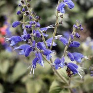 An erect half-hardy herbaceous perennial to 90cm in height, with triangular leaves and large panicles of vivid deep blue, 2-lipped flowers 2cm in length blooming from mid-Summer through late Autumn,