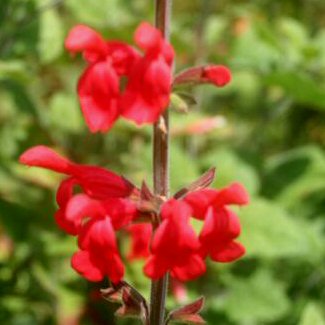 A hardy herbaceous perennial native to a very small area of the high Mexican Sierra Madre. Discovered in the wild in 1988, it has 4 cm (1.5") bright coral red flowers on inflorescences up to 60cm (2'), above deltoid (triangular) pastel green leaves that are very sticky. Growing to 1m (3' - 4') it has stoloniferous (tuberous) roots that spread over time.