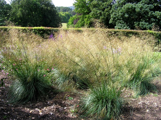 Will grow in any type of well-drained light soil in full sun or partial shade. It is an excellent alternative to pampas grass as a lawn specimen in small gardens, and perfect in a border or a gravel garden. Propagation is by division in spring.