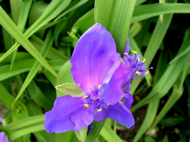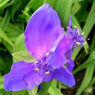 A hardy perennial to 60cm, forming dense clumps of copious narrow, arching leaves and small clusters of deep violet-blue flowers 3-4cm in width from early summer.