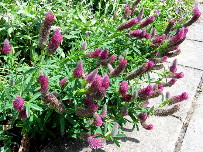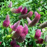 Attractive ornamental, hardy, low growing species of clover. Huge silvery buds open to bright purple red elongated clover clusters in profusion. A magnet for bees and butterflies. Prostrate spreading ground cover plants that provides green fertiliser by adding nitrogen to the soil.