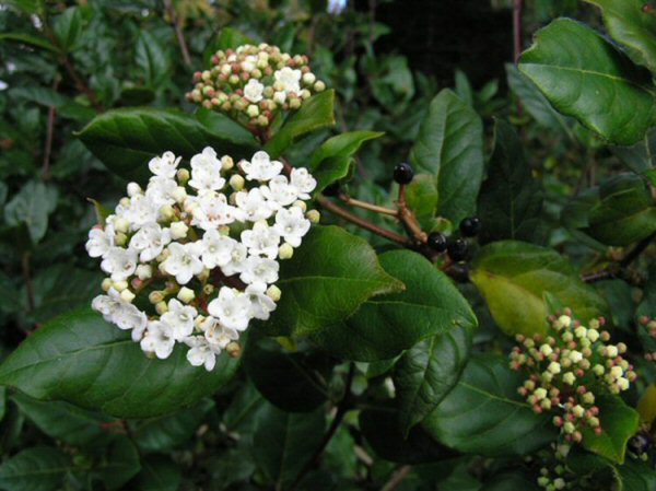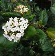 A hardy evergreen shrub, growning to 2m, for winter interest with dense dark green foliage and flowers which appear over a long period from December to April. The pink flower buds open to tiny, star-shaped white flowers followed by small dark blue-black fruits. It can also be grown as an informal hedge and is shade-tolerant.