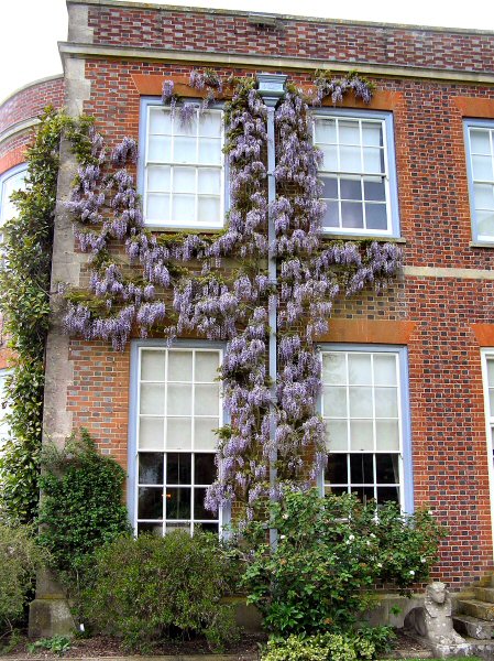 Hardy, climbing shrub that can grow to over 30m over many supports via powerful clockwise-twining stems with distinctive fragrant, purple flower racemes in mid-spring that can reach nearly half a meter in length and dark-green, leaves 10-20 cm in length. Poisonous, brown, velvety, bean-like seed pods 5-10 cm long mature in summer and persist until winter.