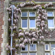 Hardy, climbing shrub that can grow to over 30m over many supports via powerful clockwise-twining stems with distinctive fragrant, pale-rose, tipped purple, flower racemes in mid-spring that can reach nearly half a meter in length and dark-green, leaves 10-30 cm in length. Poisonous, brown, velvety, bean-like seed pods 5-10 cm long mature in summer and persist until winter.